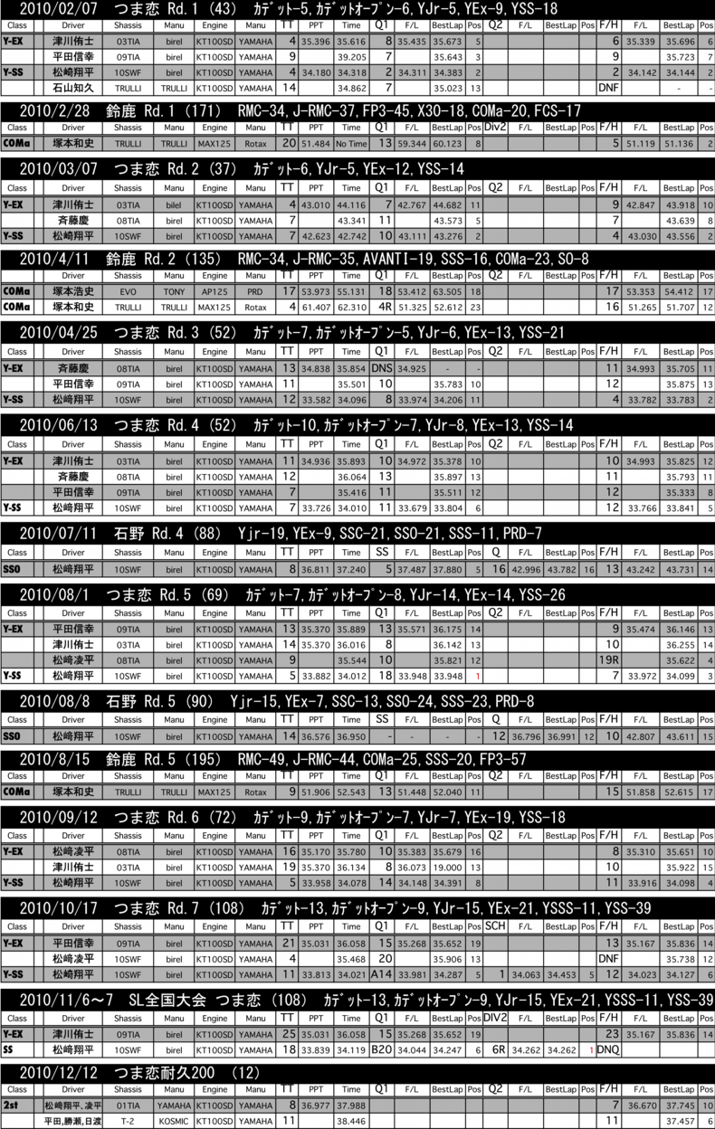 ☆2010 全リザルト