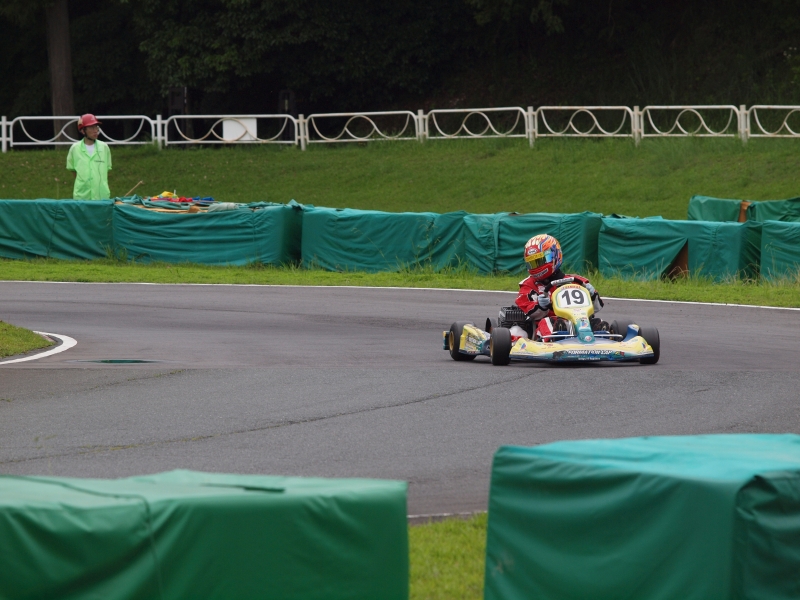 前夜の雨の残る路面、レインタイヤでの走行となった公式予選。前回ぶっつけ本番に近い状態ながら、2位フロントローを獲得した塚本だったが、今回こそ1度も走ったことのない正真正銘のぶっつけレインタイヤでの走行となる中トップタイムを刻み、RSO時代以来の鈴鹿2回目のポールポジションを獲得した。徐々に路面は回復し、公式予選後半からドライタイヤとなった路面であったが、予選が始まるとポツポツとまた雨粒が落ち始めることに。小降りではあるが全車レインタイヤへと付け替え予選がはじまる。スタートをミスって1周目2位に後退するも2周目には難なくトップに返り咲き、3周目には後続をストレート1本近くはなす独走状態に。しかし好事魔多し、急に雨脚の激しくなった路面に足元をすくわれ3コーナーでコースアウト。何とか4番手で隊列に戻るも、ヘビーレインのコンディションにセッテイングが合わずずるずると後退、10位までポジションを下げてしまうことに。そしてその後雨脚の激しくなった路面も午後になるとまたも徐々に乾きだし、決勝の段階ではレイン、ドライともいえない非常に微妙な路面コンディションに。結局ドライ、レイン半々の選択のなか、後半での逆転を狙いドライタイヤを選択しグリッドへ。序盤、難しいコンディションのなかを我慢の走りで、後半での逆転を狙う作戦でのスタートとなったが、結局、乾きだした路面に中盤から雨粒が落ちだし万事休す。ペースも上がらず、まさかのノーポイントでレースを終えた。