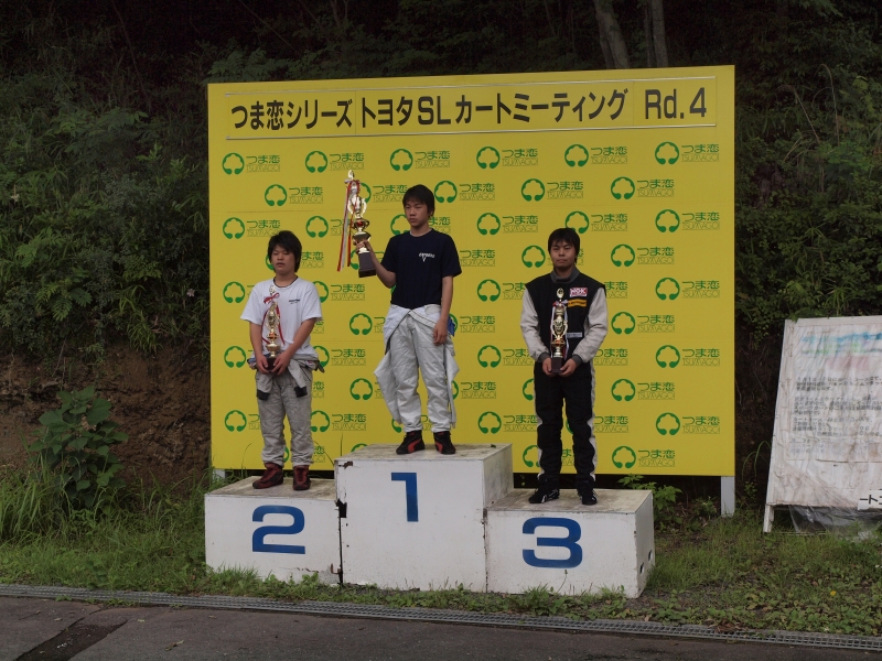 雨空の中、ドライタイヤでのレースとなったRd.4。ヤマハEXに松﨑(凌)、斉藤。SSに松﨑(翔)の3名が参戦した。久々ニュータイヤの松﨑(凌)は公式練習では好調だったが、TTは4位、予選はローリングでスピンし最後尾からの追い上げで5位と厳しい戦いになってしまった。そして決勝、スタートでひとつポジションを上げると、一時は3位を走行するも差し替えされて4位へ。そのまましかけることもできずレースも終盤を迎えると、トップと2位が1コーナーで絡み棚ぼたの2番手に。こぼれかけた表彰台を取り戻し、ポイントでも逆に5ポイント差を加えランキングトップを死守した。一方今期2度目の参戦となった斉藤は、公式練習からタイヤが外れるアクシデントに見舞われ、調子に乗れないままレースを終えた。SS松﨑(翔)は最近の低迷からの脱出をはかるも出口の見えない戦いが続く中、TT10位と今回も苦戦。細かいセッティングを詰め、予選、決勝と徐々にスピードを取り戻すと、決勝では表彰台の見えた4位までポジションアップ。結局6位でレースを終えるも、久々にトップの見える場所での上位とのバトル内容で、足りない物がわかった実のあるレースであった。
