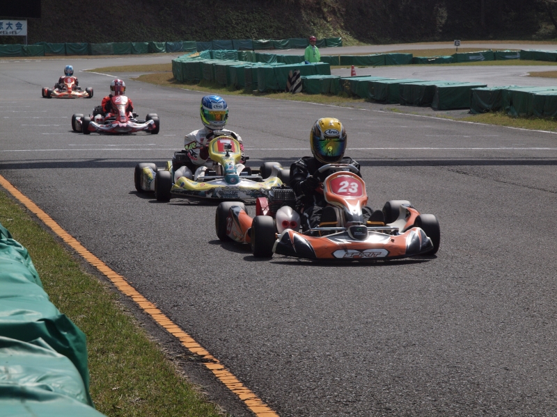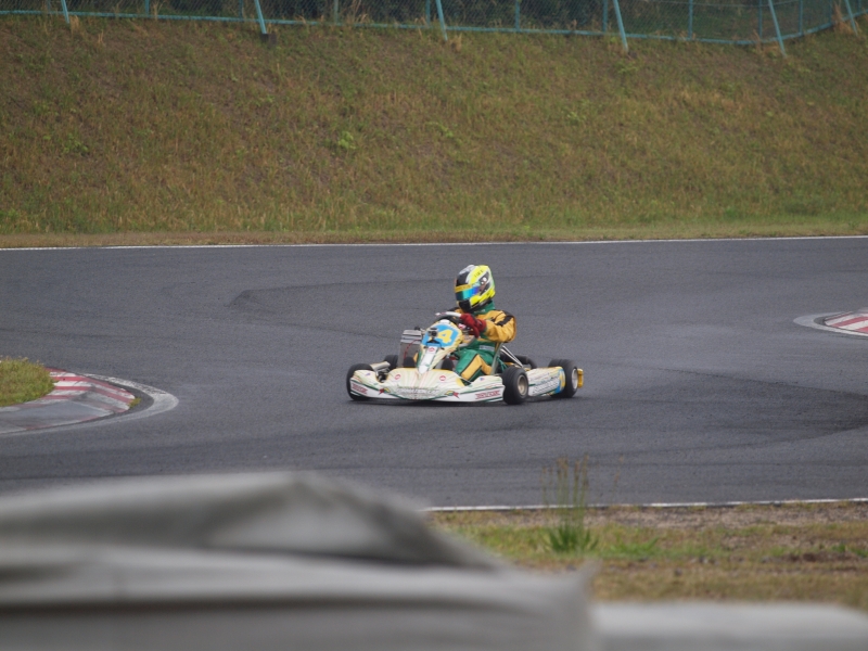 雨の予想もあったレース当日であったが、フルドライコンディションでのレースとなる。予選、ポジションキープの2番手でスタートを切るも、路面温度の急上昇にエア圧が合わず4位でゴール。決勝での巻き返しを誓う。ぽかぽか陽気のまま、午後決勝がスタート。決勝直前、さらなるペースアップを図りキャブジェットを交換。スタートすると、いきなりストレートエンド3コーナーで簡単に前者をパス。キャブセッテイングが当たったかに思えたが、2周目、3周目と徐々に低速コーナーでの立ち上がりが鈍り、次々とパッシングを許す展開に。結局レース後になりジェット交換は正解だったのだが、インテークサイレンサーのベルトのゆるみにより、エアーをすっての不調と、単純なメカミスだったことがわった。終わってみれば13位と惨敗の結果となってしまったが、マシンのポテンシャルの高い事は証明された。過去3勝のうち2勝はTONYで上げたもの。相性のいいシャーシでの4勝目は、すぐそこにありそうだ。