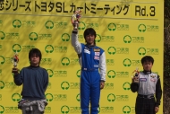 震災の影響もあり、松﨑兄弟2名のみの参加となったつま恋Rd.2。前回初表彰台のヤマハEX松﨑(凌)は、勢いそのままTTではトップタイムを記録し初ポールポジションを獲得。予選でも危なげなくトップでゴールし、初優勝のお膳立てができあがった。そして迎えた決勝であったが、なんとスタートで大失敗。1周目3位まで後退すると、コースレコード34.636を記録する追い上げでも、最終ラップまでポジションを回復することができず、悔しい2位でのゴールとなったが、ポイントでは逆転でトプでたった。一方、SS松﨑(翔)は、TT3位から指定席の表彰台を目指したが、予選決勝ともクラッシュに巻き込まれ、10位1ポイントに終わった。次戦は短いインターバルで4/17、Rd.3となる。