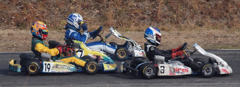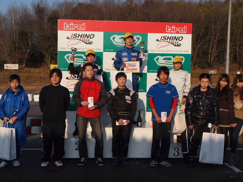 2012年幕開けレースとなる、石野5周年記念レース、石野ウインターチャレンジが開催された。FLRからは、ヤマハTIAクラスに松崎(凌)、平田、斉藤の3人が参戦。共に初レースとなるコースで、前日の雨の残るウエットレースからのスタートとなり、公式練習を終えてもドライタイヤのコンディションとはならず、レインタイヤでの公式予選となった。ここではSL94新品レインの松崎、平田を尻目に、斉藤がNEWレインで5位をゲット。松崎、平田は13、14位と後方に沈む。しかし決勝ではドライ路面となり、松崎は6位までポジションアップ。平田も11位と順位をあげるも、斉藤は8位迄ポジションダウンとなった。そして決勝、スタートにかけた松崎であったが、斉藤と共に2コーナでのアクシデントに巻き込まれ大きくポジションダウン。松崎はその後徐々にポジションを回復するも、トップ集団に追いつくことなく、ほぼ単独走行で7位ゴールとなった。平田も予選と違いバトルを重ね9位でゴール。斉藤もバトルで何度もスピンするも、果敢なレースで完走を果たした。