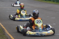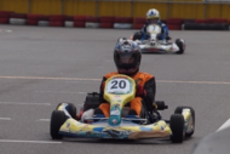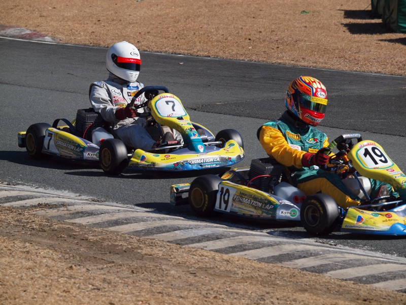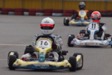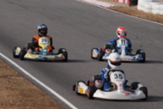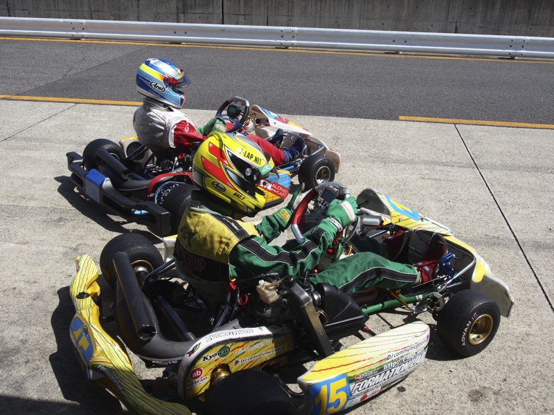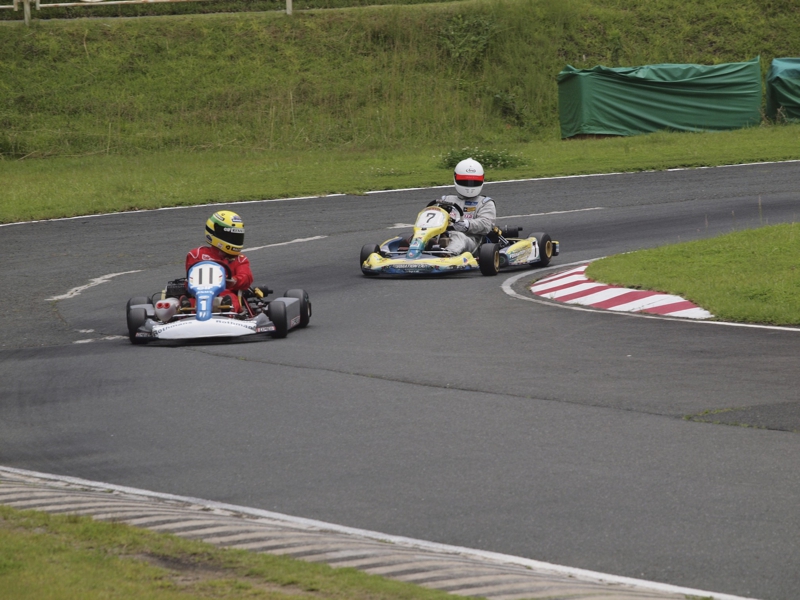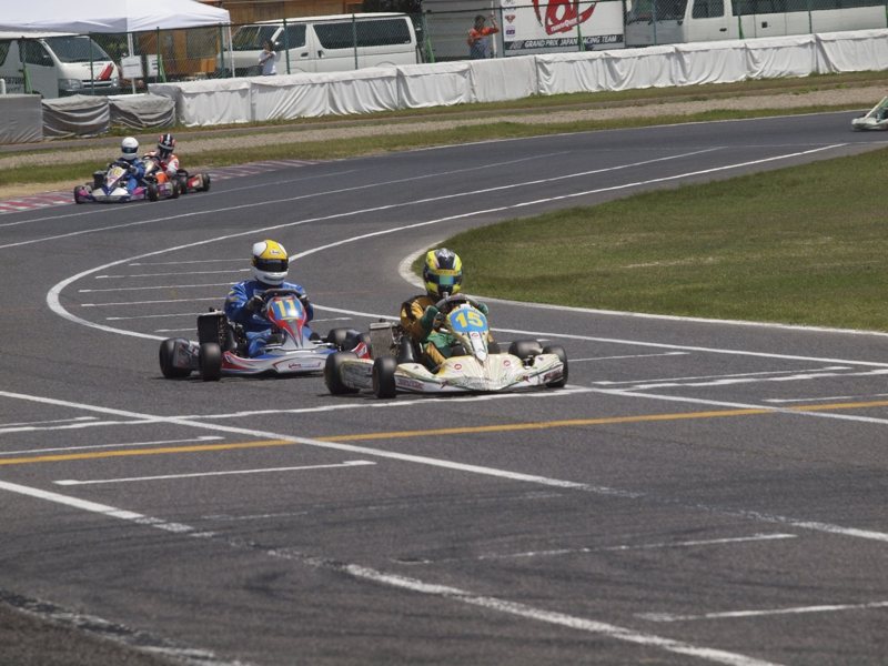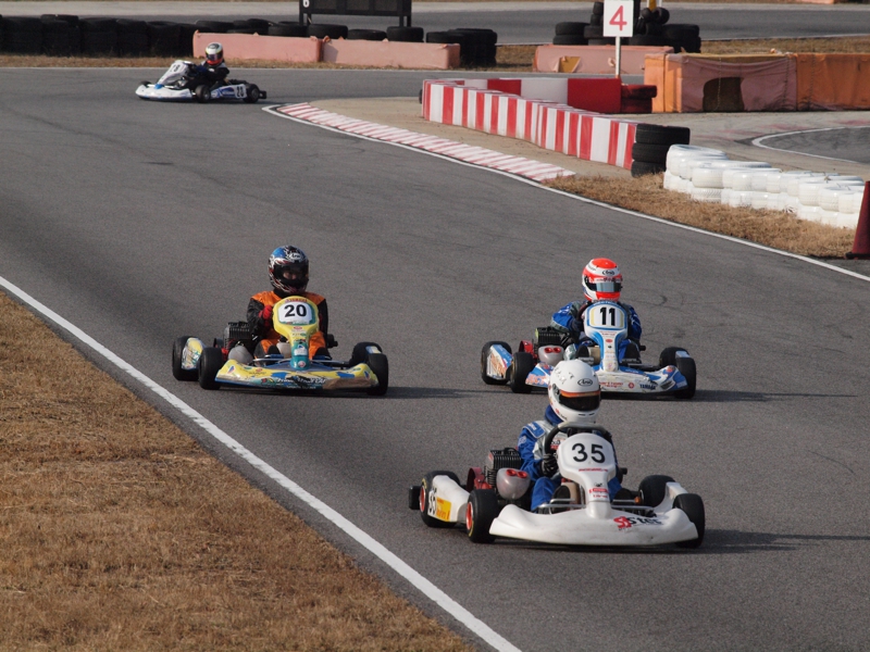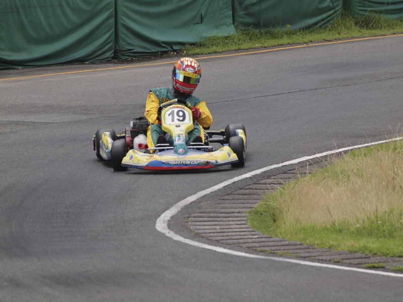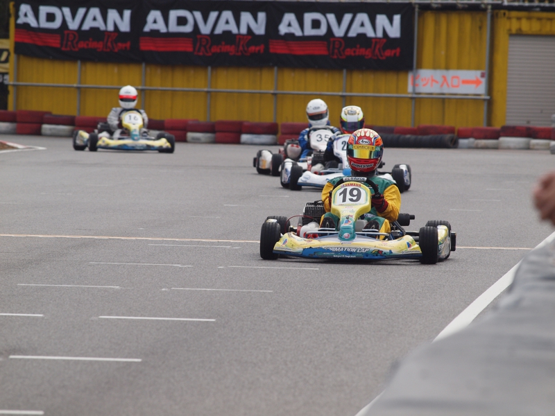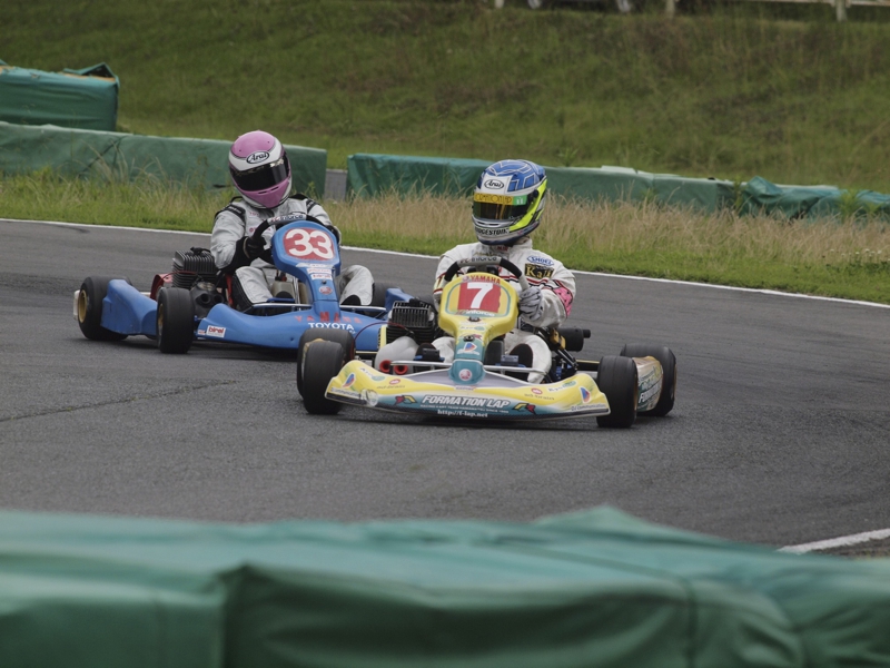 前戦、原因不明のE/G不調が1日続き、レースを失った塚本がRd.3に連続参戦した。まずは不調箇所の割り出しからと前日土曜の練習走行をスタートすると、前戦のままのくんだカートからはトラブルが出ず、全く原因不明のままレース当日を迎える事に。トラブルがなければそこそこの順位にいれるはずと挑んだ公式予選だったが、新品タイヤで前日のタイムを更新できず12番手と中断に埋もれる結果に。予選でもペースが上がらず12位でゴール。昨年の調子はどこへやら。マシンをみても変更したのは、オプションパーツのカーボンフロアパネルのみ。もしかしてと、ノーマルのアルミフロアパネルに交換して決勝をスタート。すると、スタートが決まっていきない9番手までジャンプアップ。しかし、離されははしないまでもやはりペースが上がらず、最終コーナでインを差されると連結列車のえじきになり、そのままアウトにはじき出され縁石の上で一回転。最後尾まで脱落し、後は追い上げるも15番手でゴール、タイムもトップの.5落ちとかなりの重傷。次戦はは苦手の真夏の8月開催。なんとか不調の波から脱したいところだ。