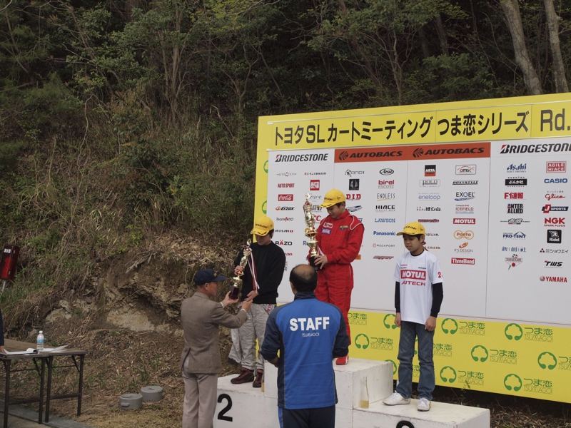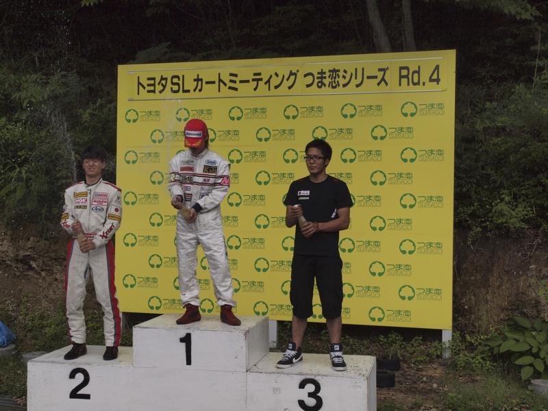 つま恋4連戦の3戦目、つま恋Rd.4が開催された。前戦2位でランキングトップに並ばれた松崎(凌)は、今回もライバル中村に、TT、予選、決勝のすべてのヒートを押さえられ単独2位でフィニッシュ。ランキングも逆転された。2戦連続で表彰台を逃していた斉藤は、マシンセットを変更し、公式練習では2番手タイムをマーク。予選スタートをミスりポジションを落とすも、決勝では落ち着いた走りで抜き返し3位表彰台を獲得した。前戦2位走行中、アクシデントでリタイヤに追い込まれポイントを落としたSS松崎(翔)は、公式練習でトップタイムを刻むも、タイムトライアルでは2番手に終わる。しかし予選、宿敵増田から決勝ポールスタートを奪うトップでゴール。決勝、序盤またも抜かれて2位に後退するも、落ち着いた走りで周回を重ね、中盤、3コーナーで一発パッシングを決めトップに返り咲く。残り10周、トップを守りきれるか、息詰まる周回が続くも、2コーナーで仕掛けられたパッシングも落ち着いて対処。離されることなくすぐ次の周に1コーナーで差しかえし、そのままトップを守り、待ちに待ったSSでの初優勝をホームコースのつま恋で達成した。