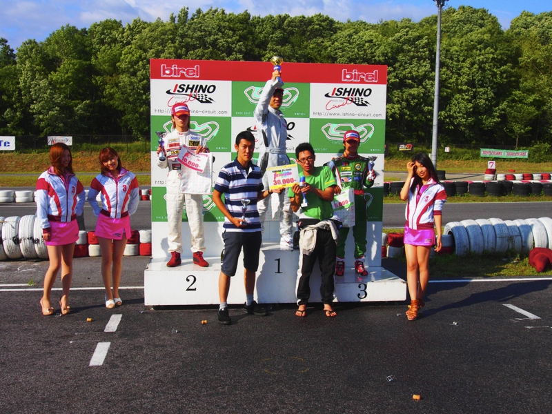 前戦のじり貧4位をリベンジすべく松崎が石野Rd.4/SSに参戦した。前戦は朝から2位タイムを刻み好調なスタートを切ったが、公式練習5番手タイムしか出ず、公式予選も5位で終了。しかし、何とか出場したスーパーラップでトップタイムを刻み、逆転ポールポジションを獲得。予選では、スタートでタイミングが合わず1コーナーをとられるも、落ち着いてトップを奪還、そのまま1位でゴールした。トップ集団にタイム差のない厳しい戦いが予想される決勝がスタート。今度はスタートを決めトップで周回を重ねるも、逃げの体制は築けずすぐにバトル状態へ。ずるずると一時4位まで後退するも、このままではトップ復帰が難しくなるとエンジンスタート。しかし3位に上がると、トップ争いの2位中原とは残り周回数を考えてても難しい距離が残る。しかし、あきらめず渾身のラップタイムを刻み続けると、天も味方し2番手の中原もトップに追いつき順位を入れ替えるバトル状態へ。ここで一気に差がつまり、3台によるトップ争いになり、最終ラップヘアピンでクロス一発、2位中原をとらえるとそのままゴール。初優勝は逃すも、価値ある2位表彰台をゲットした。