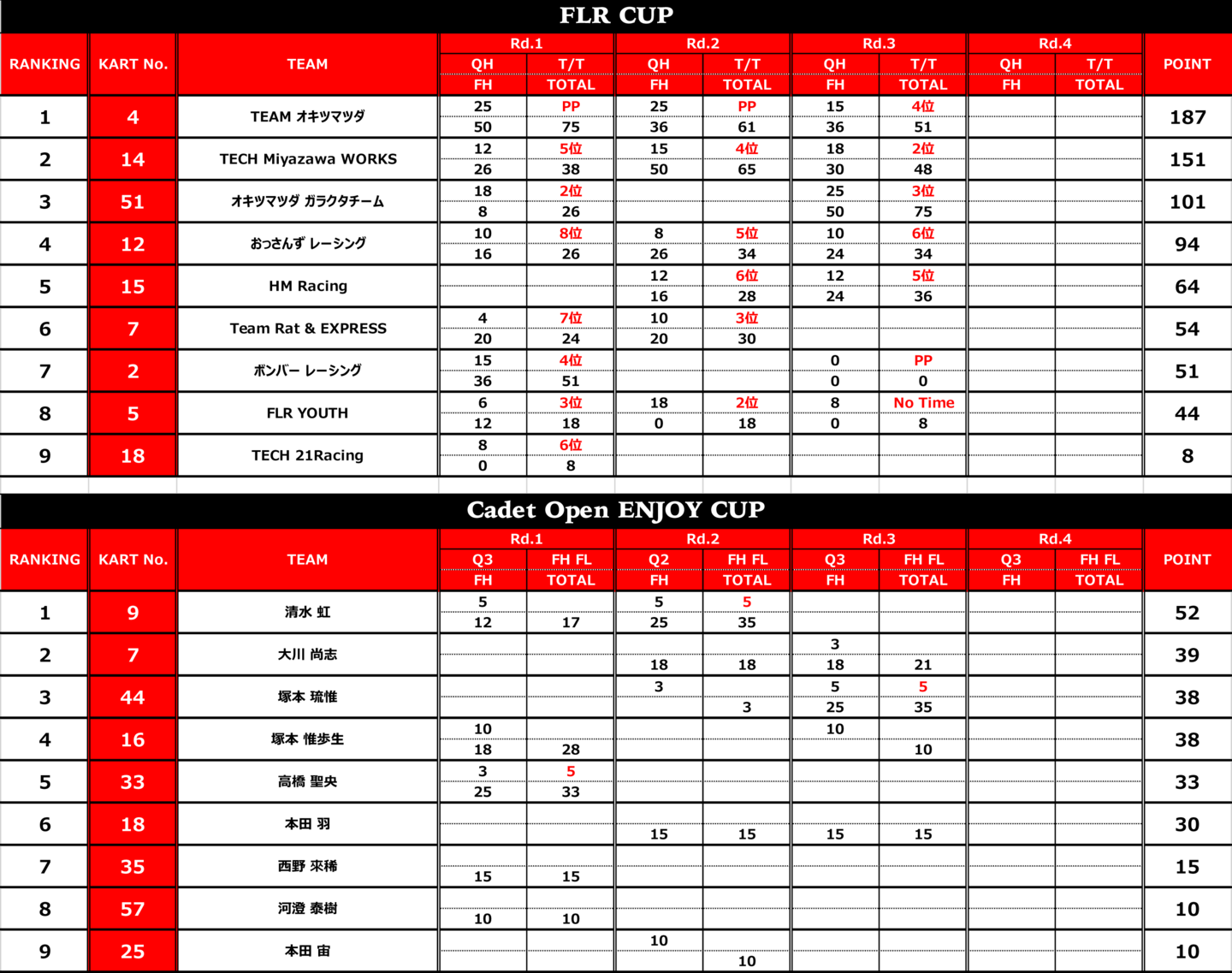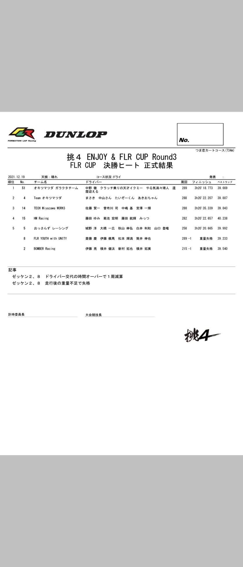 | 15 | HM Racing | 藤田 ゆみ | 菊池 宏明 | 藤田 航輝 | みっつ | - | - | - | |