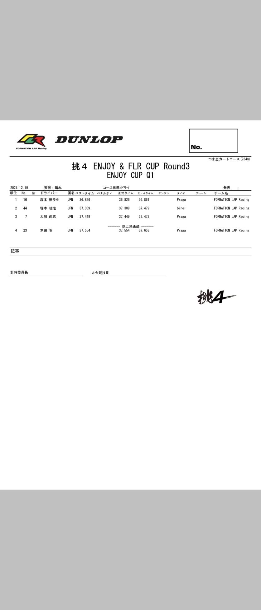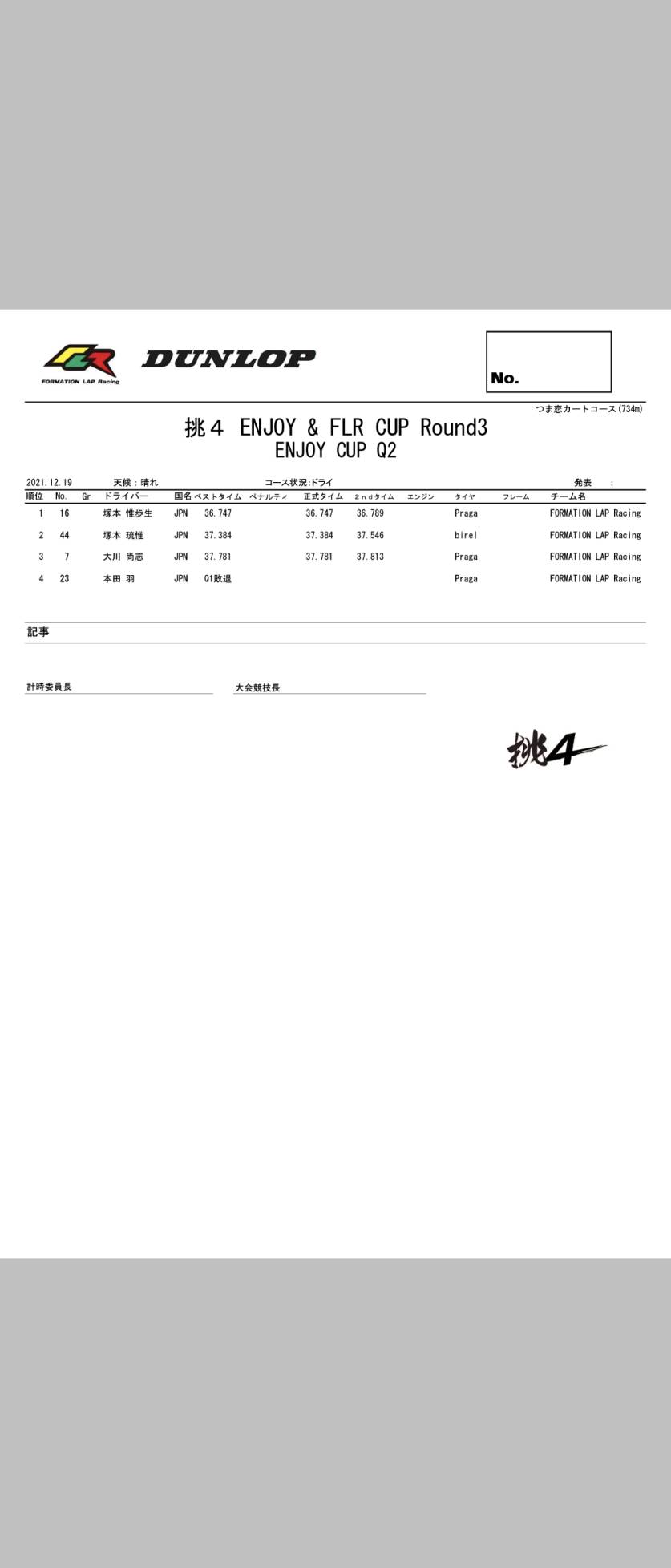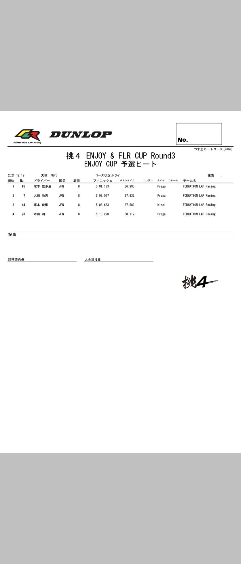 | 16 | 塚本 惟歩生 | 小6 | FORMATION LAP Racing | Praga |