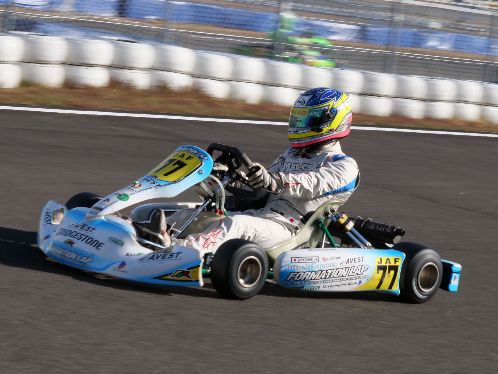 今年全日本カート選手権をFP3から参戦しランキング23位につける松﨑凌平。引退をかけて争った全日本選手権ではトップ争いに絡むことなく厳しいいレースが続き、問題の本質を見極めることができず復調の兆しが見えた中山ではクラッシュDNFで終えることとなり、燃え尽き東西統一のもてぎをキャンセルすることを決める。そして開幕戦以来となる瑞浪シリーズに戻ってきた松﨑。走りなれた瑞浪では速さを見せ、T/Tではポジショニングに失敗し9位と出遅れるも、予選では6位、5位とポジションを上げ決勝4番手セカンドローを獲得し、ラストレースで表彰台を獲得するには十分のスタートポジションとなった。そして決勝、相変わらずの激戦となったSSクラス。レベルの高いトップ争いに絡めるだけの実力を発揮し一時3番手まで浮上する。トップ2台が少し抜けるも、3番手争いの集団の中でチャンスをまち堅実な走りでトップ集団を形成。最終ラップまで続くトップ争いに絡みながら一歩及ばず4位とおしくも表彰台を逃す結果となった。今後の去就はまだ不確実ながら、瑞浪でトップ争いできる実力は証明することができた。