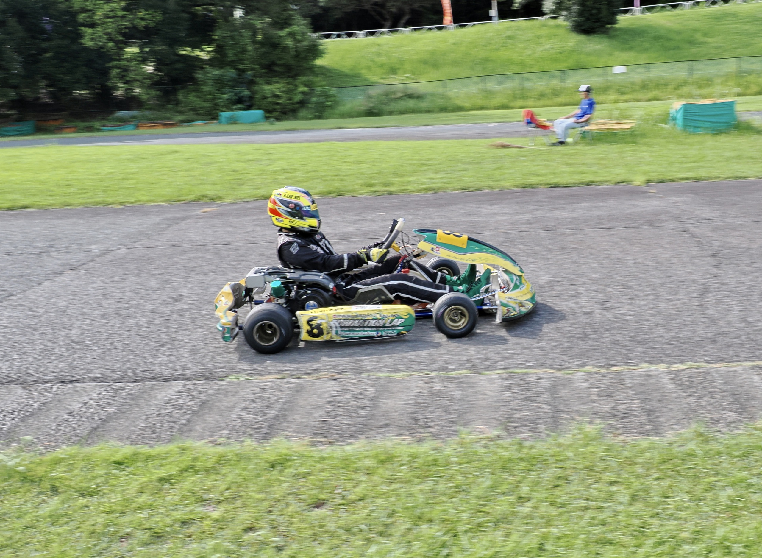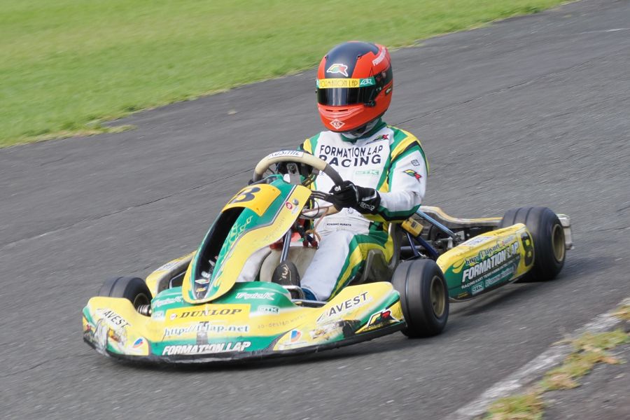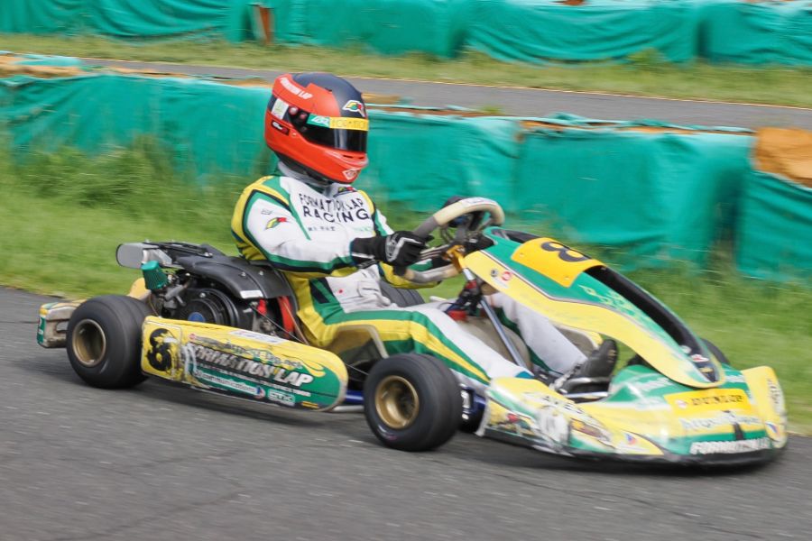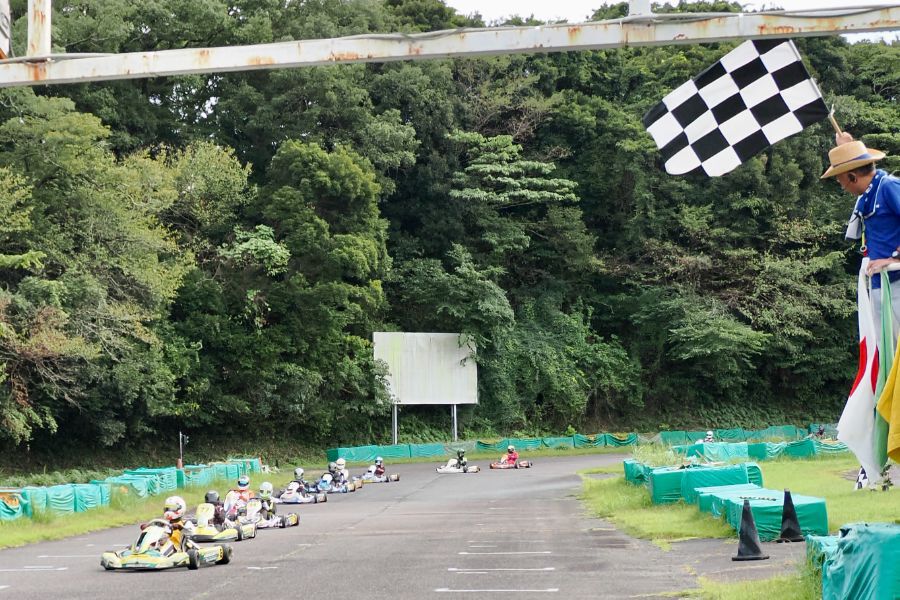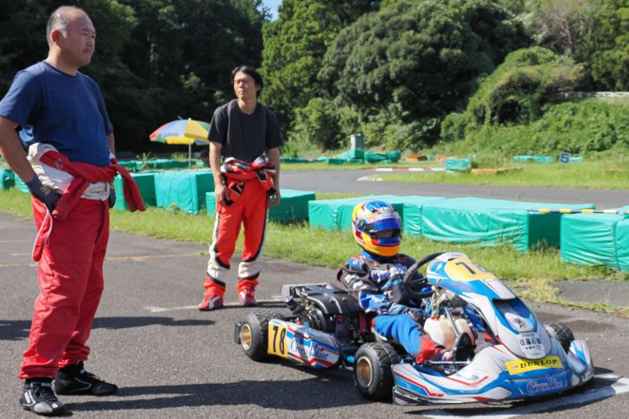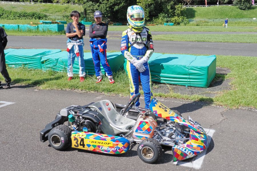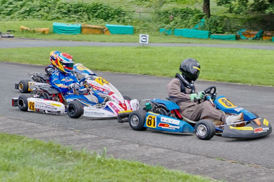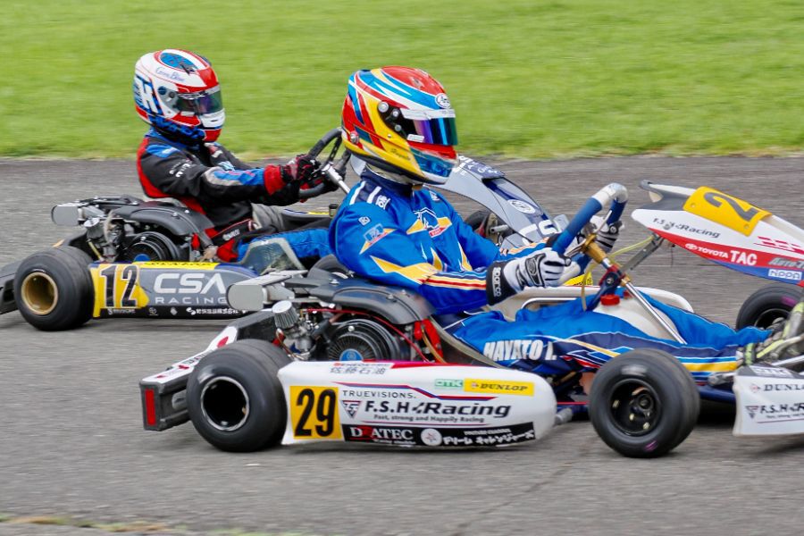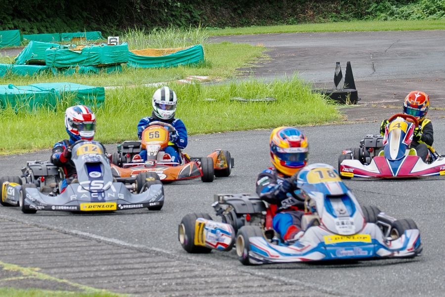 そして始まったスプリント予選。CSA小山田、ロケット団中野、FLR YOUTH琉惟の順でファーストコーナーへなだれ込む。スタートでポジションを1つ落とした琉惟だったが、4周目には中野を捉えトップの小山田に標準を定める。中野とのバトルで1つ抜け出し単独走行の小山田に、ペースで上回る琉惟が6周目にはぴったり後ろに張り付くと、7周目の3コーナーで見事にパッシングをきめトップに躍り出る。中野もトップ2台のバトルに乗じ小山田をパスし2位に上がる。4位以下を2秒以上離したトップ3だったがここからバトルはますます激しくなり、後続も追いつき7台パックの大バトルに。4コーナーで中野が強引に琉惟のインを突くと行き場を失いコースアウト寸前に。迫っていた後続に次々と抜かれ5位まで後退。中野は最終ラップに2位までポジションを戻すも、AUTO TEC稲寄がトップでゴールし、CSA小山田、FLR琉惟は4,5位で予選を終えた。
