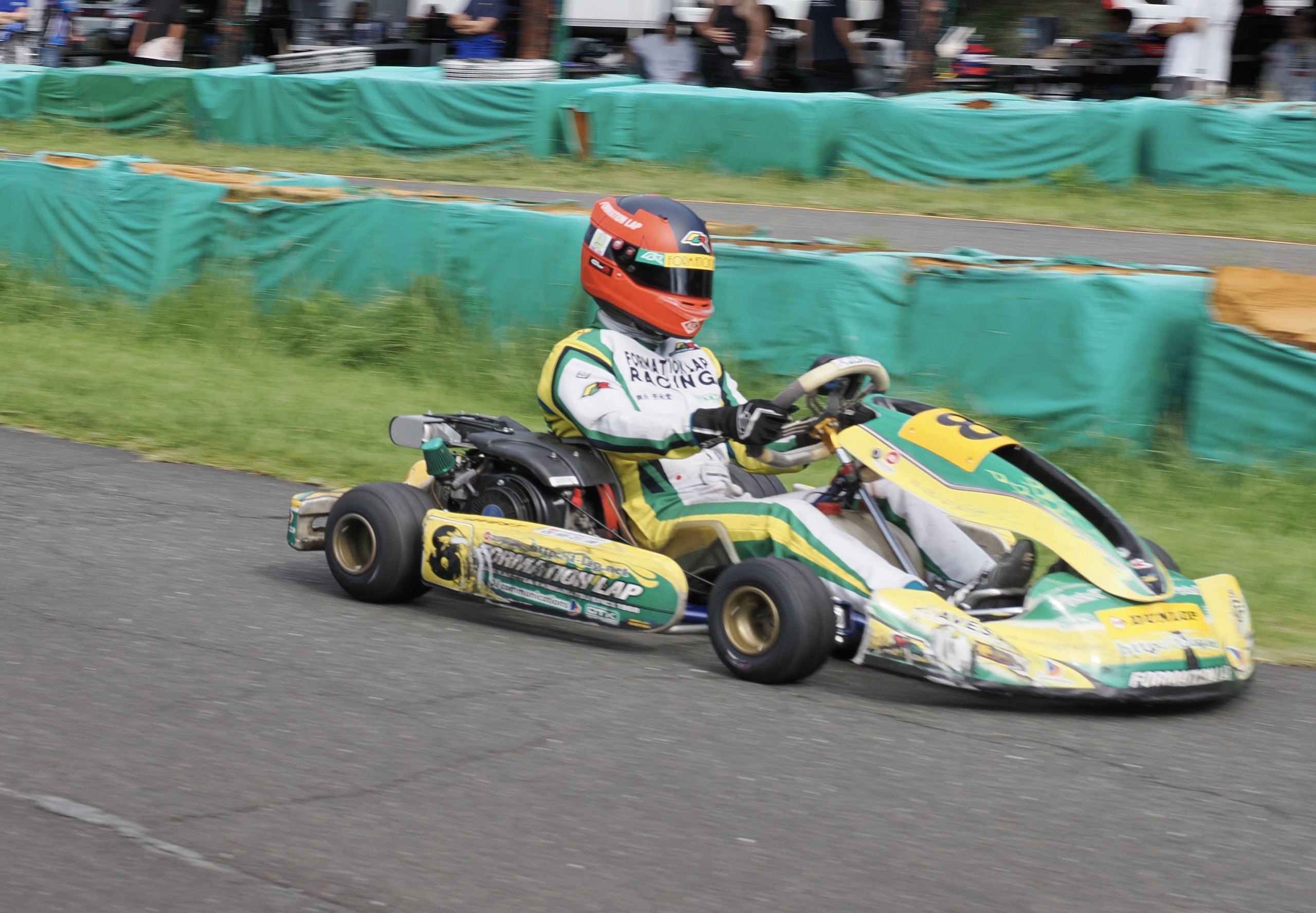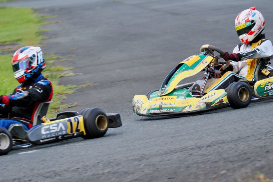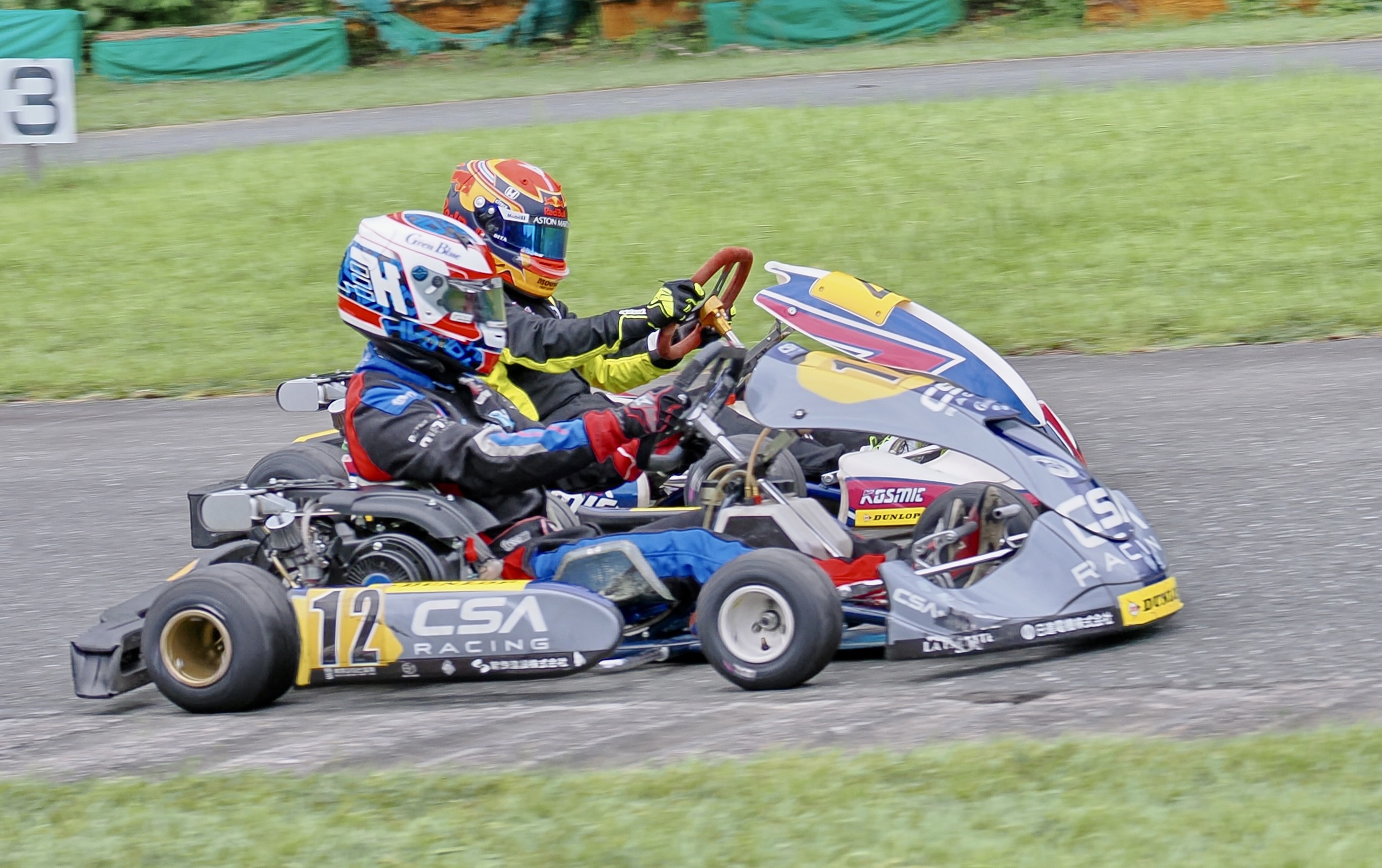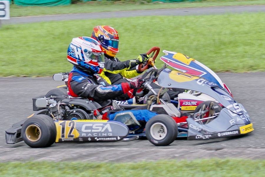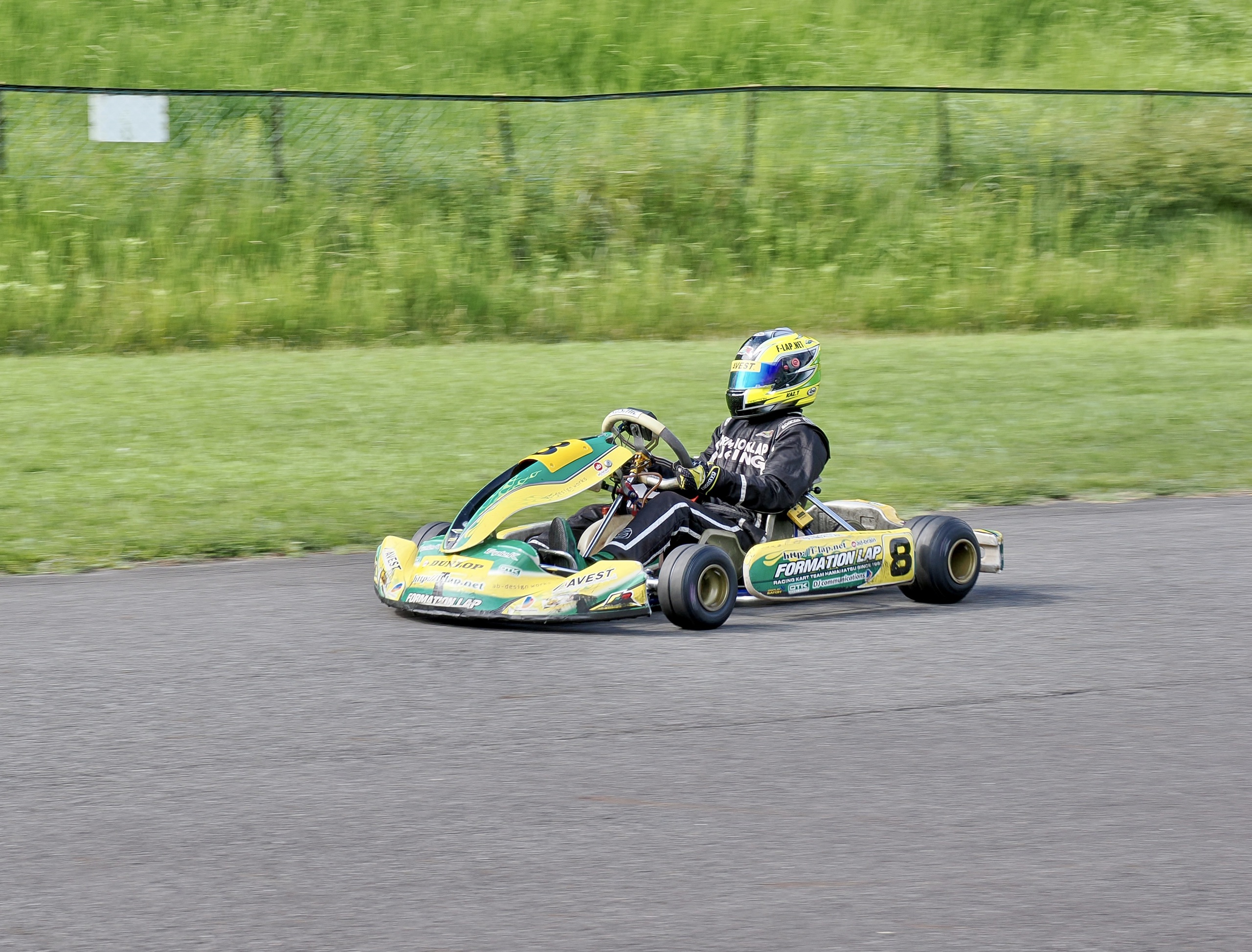 そして始まったスプリント予選。CSA小山田、ロケット団中野、FLR YOUTH琉惟の順でファーストコーナーへなだれ込む。スタートでポジションを1つ落とした琉惟だったが、4周目には中野を捉えトップの小山田に標準を定める。中野とのバトルで1つ抜け出し単独走行の小山田に、ペースで上回る琉惟が6周目にはぴったり後ろに張り付くと、7周目の3コーナーで見事にパッシングをきめトップに躍り出る。中野もトップ2台のバトルに乗じ小山田をパスし2位に上がる。4位以下を2秒以上離したトップ3だったがここからバトルはますます激しくなり、後続も追いつき7台パックの大バトルに。4コーナーで中野が強引に琉惟のインを突くと行き場を失いコースアウト寸前に。迫っていた後続に次々と抜かれ5位まで後退。中野は最終ラップに2位までポジションを戻すも、AUTO TEC稲寄がトップでゴールし、CSA小山田、FLR琉惟は4,5位で予選を終えた。
