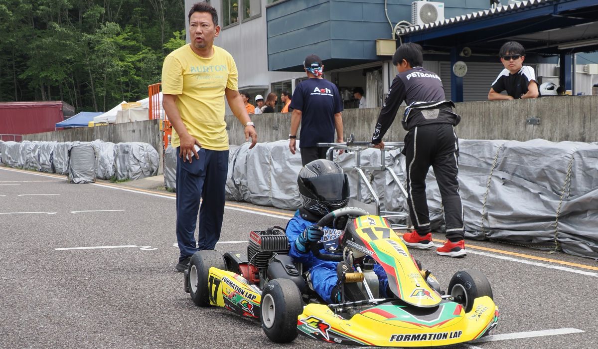 小学校高学年サッカーにシフトし、2022年以来3年ぶりの石野参戦となった塚本琉惟。地元つま恋ではMZ耐久レースに今年からチャレンジ。チームマシンを借受けMZシニアクラスに参戦した。