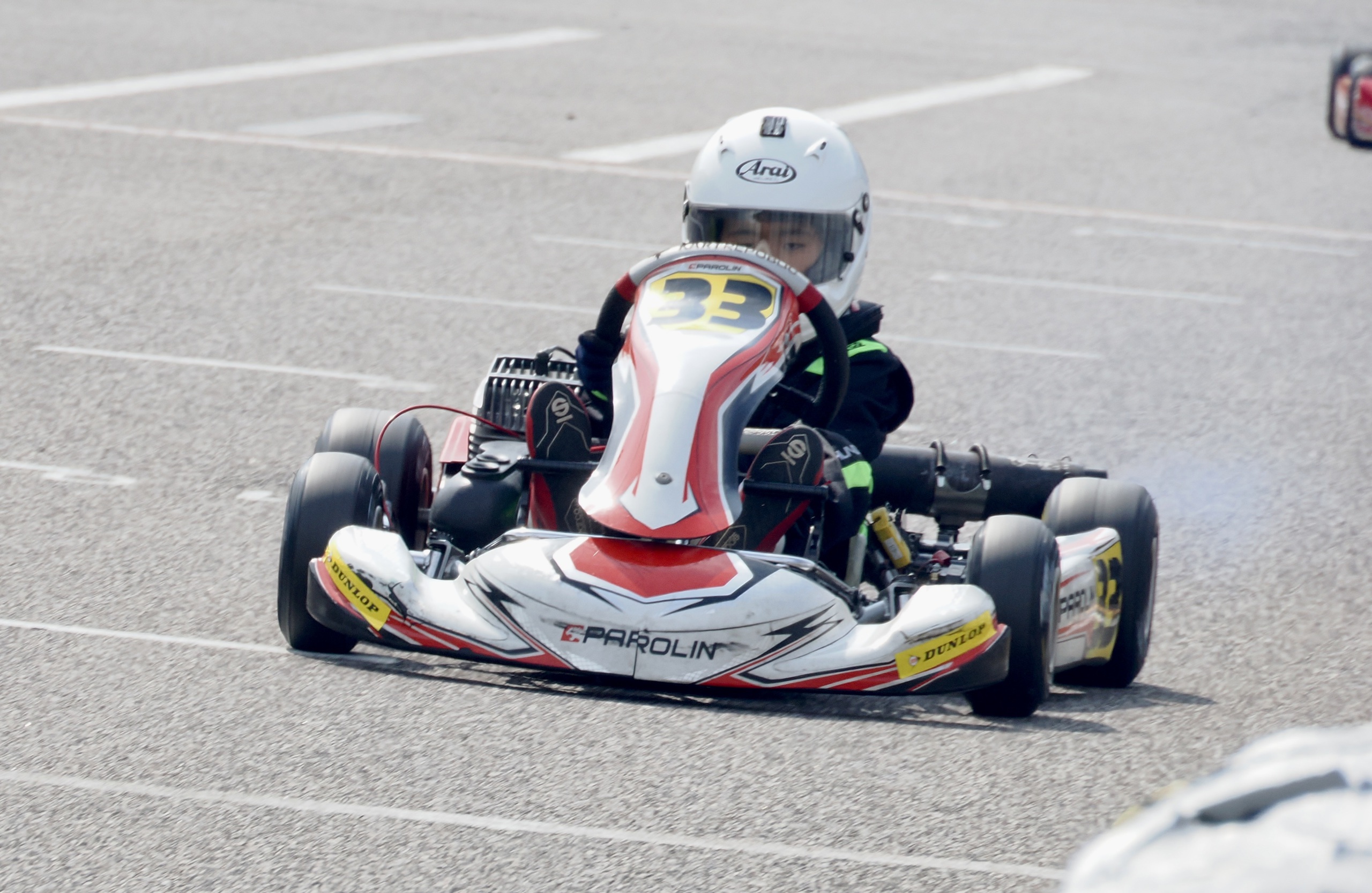 TONY KARTからPragaにEguipmentをスイッチして戦う第4戦。前日練習では使い古したタイヤで、トップ勢と遜色ないタイムを刻み好調さをアピールする。