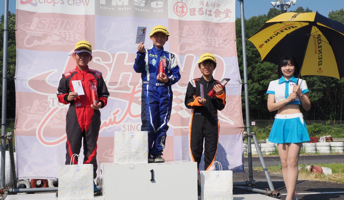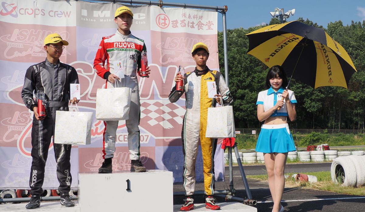 決勝、なんとかポジションアップを目指し戦いを挑む。マシンが速くならなければ予選同様の展開となり、表彰台は望めない。なんとか離されず上位カートに絡みチャンスを狙いたいところだったが、アウトスタートで順位を落としてしまう。すぐさまポジションを戻すも、3番手とは離れてしまい、なかなかその差を縮められない。それどころか後続からのプレッシャーをうけるもなんとか完璧なブロックでポジションを守る。そのままレースは最終周。このまま予選同様の順位でゴールを迎えると思われたが、なんと3位大川がチェーントラブルで失速。単独4番手走行も女神が微笑み3位表彰台を獲得した。